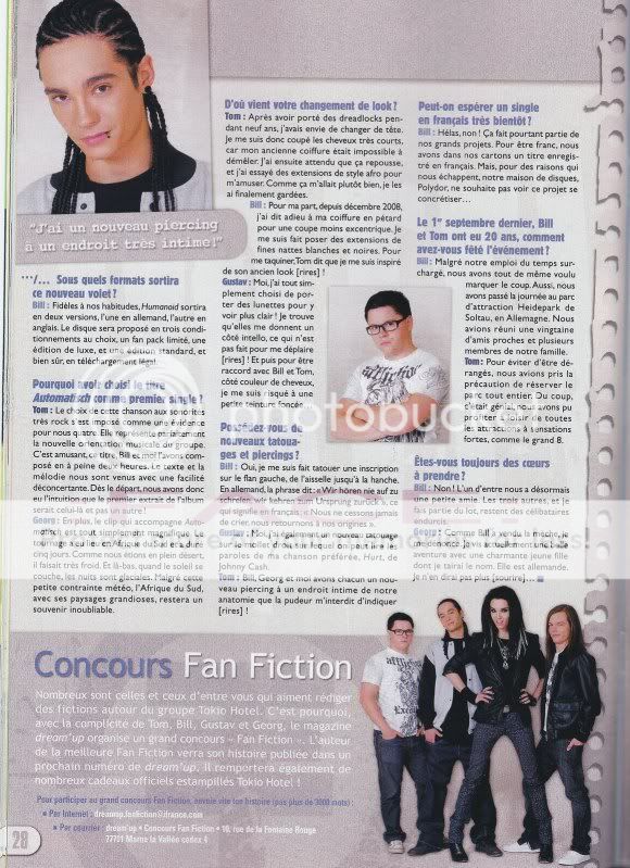Bill: No tenemos miedo de nada. Los fans de Tokio Hotel están siempre presentes y muchos todavía siguen con nosotros hoy. Es para aquel público que nosotros hemos estado ausentes durante mucho tiempo, de modo que nosotros pudiéramos ofrecerles algo digno de su apoyo.